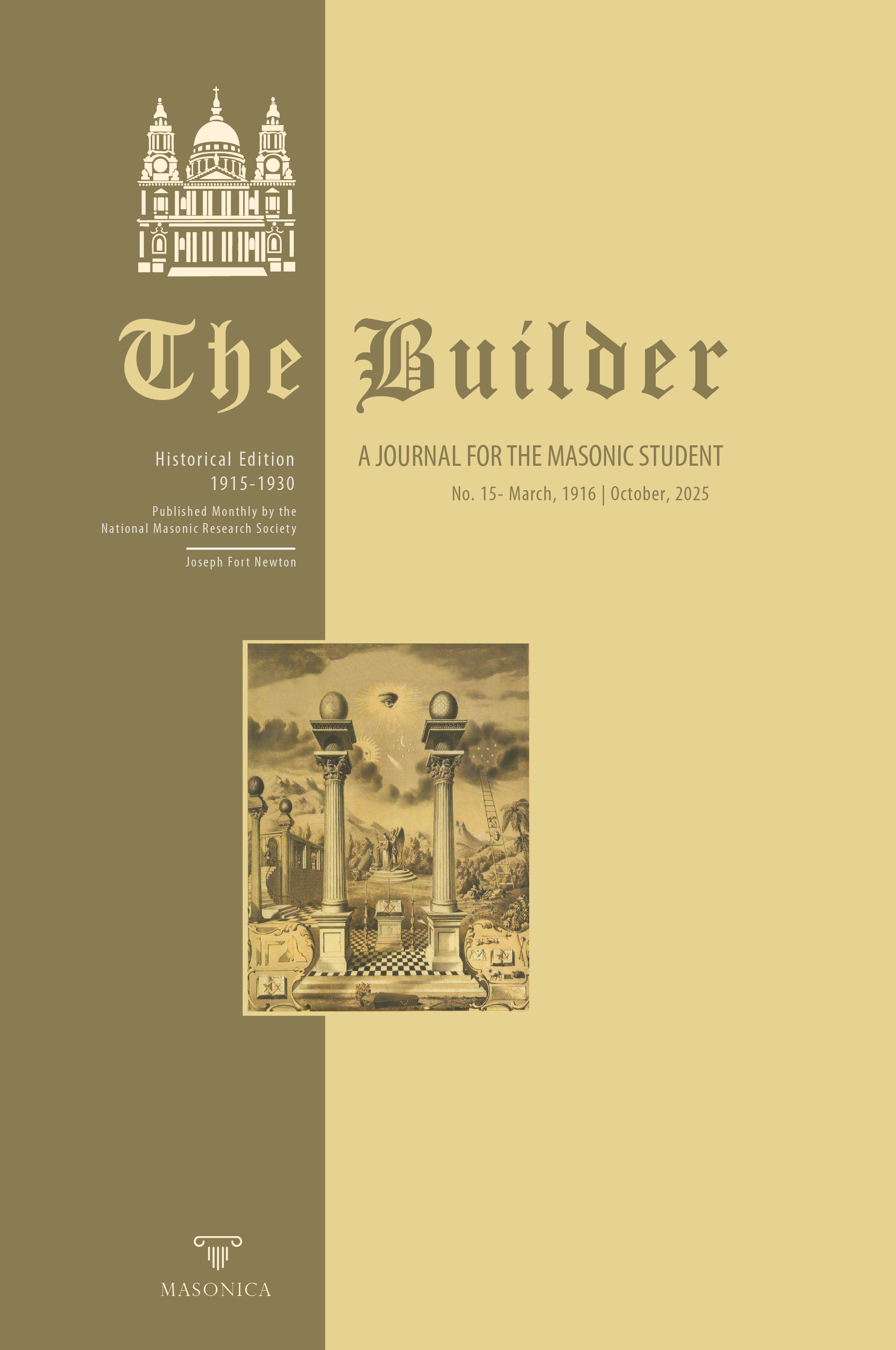 The Builder will be positive, but not dogmatic; open minded, but never indifferent; considerate of all, but absolutely uncompromising in respect of the principles of Freemasonry, seeking the truth, the whole truth, and nothing but the truth. Critical it must be, since criticism, as Arnold defined it, is appreciation, estimate, co-operation in the search for truth. Those who write for these pages may expect to have their theories put to the test of reason and fact in the open forum of debate, which is what the seeker after truth most desires. Let the discussion be frank, free and thorough; all that the editor asks is that it be fraternal in spirit, each one keeping an open mind and a kind heart toward all his comrades in the great quest.